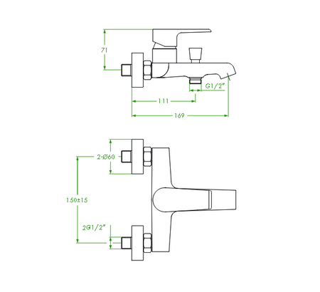 Vonios/dušo maišytuvas LAVEO LARGO 202K W-CH, be dušo komplekto