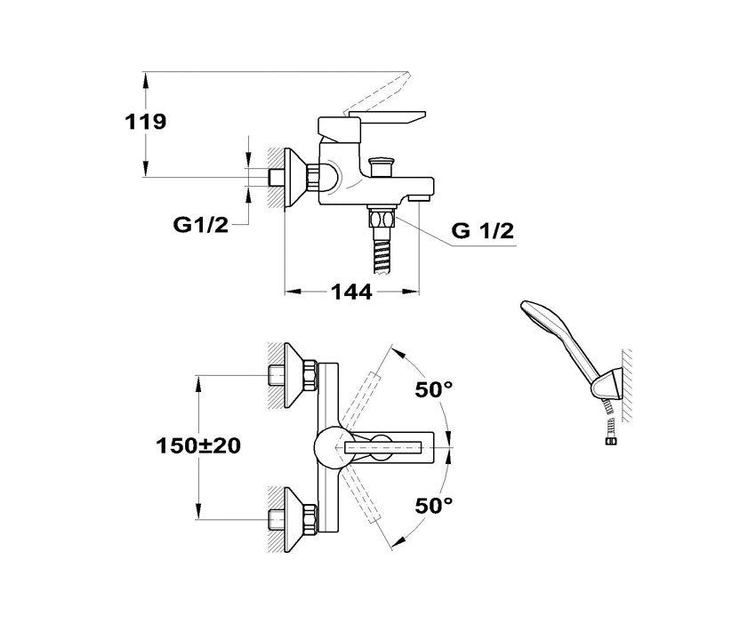 Vonios/dušo maišytuvas TEKA MAMBO 202K, be dušo komplekto