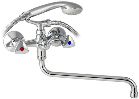 TEKA MEUR 603 KR modelis - dviejų rankenėlių, vonios/dušo maišytuvas su dušo sistema, 30 cm. čiaupu, padengtas atsparia chromo danga. Maišytuvas patogus naudojimui tiek vonioje, tiek dušo kabinoje. Unikalaus klasikinio dizaino, amžinai stilingas maišytuvas suteikia Jūsų vonios kambariui nepakartojamą žavesį.