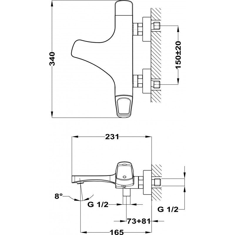 Vonios/dušo maišytuvas TEKA SEN 202K G, be dušo komplekto