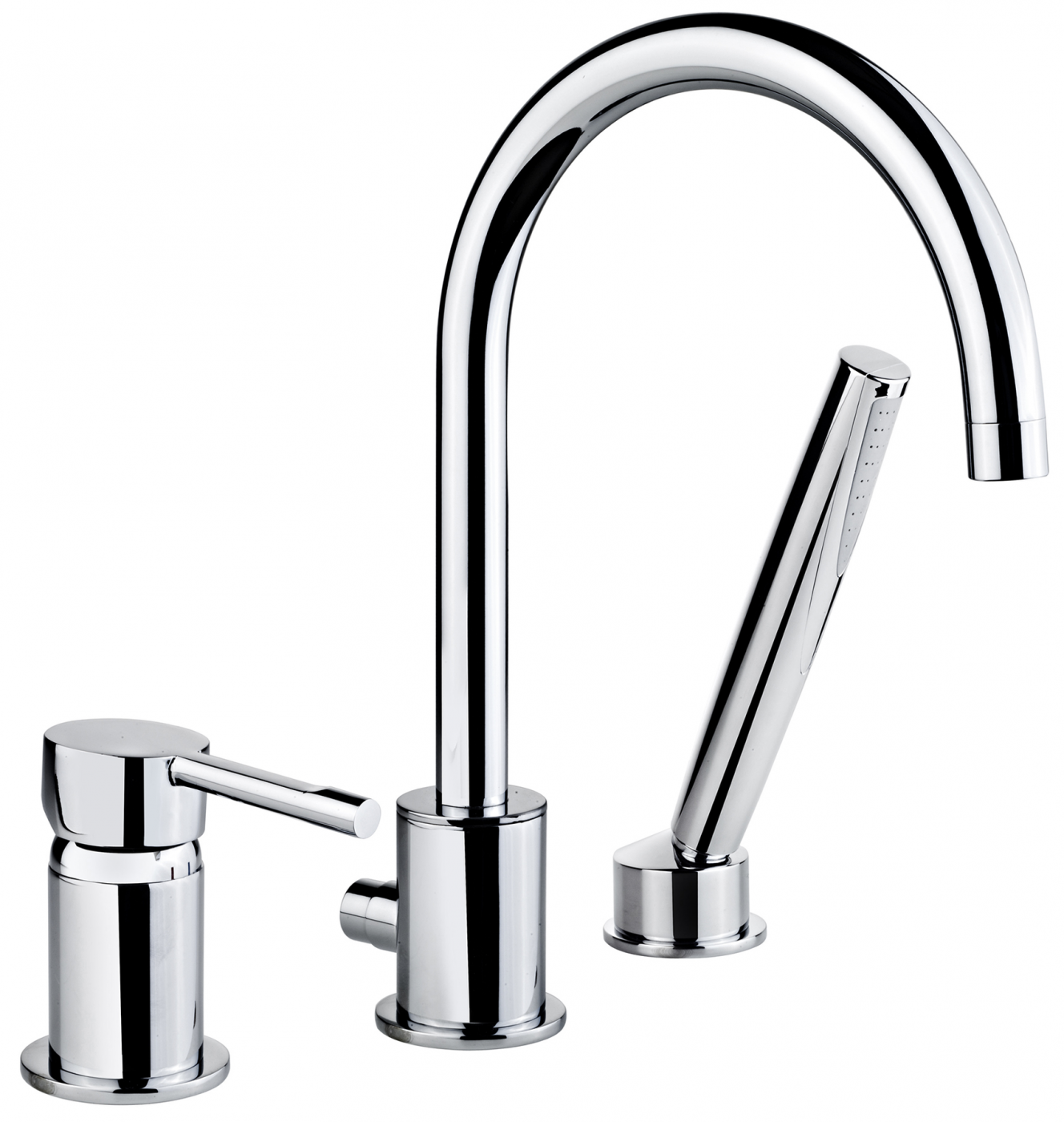 TEKA ALAIOR 3 – modernus, svirtinis, trijų dalių vonios/dušo maišytuvas, padengtas atsparia chromo danga, su pasukamu čiaupu ir montuojamas ant vonios krašto: